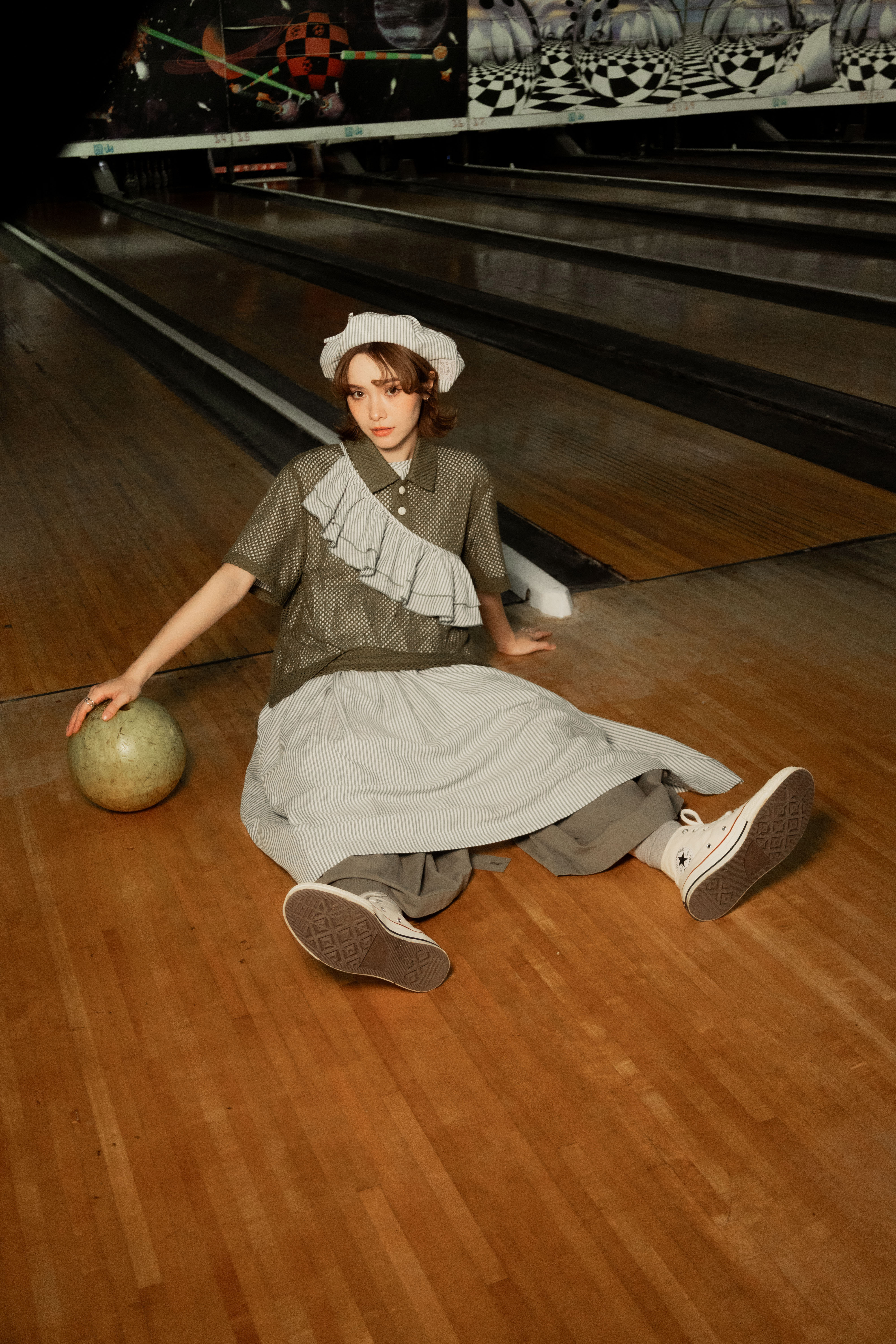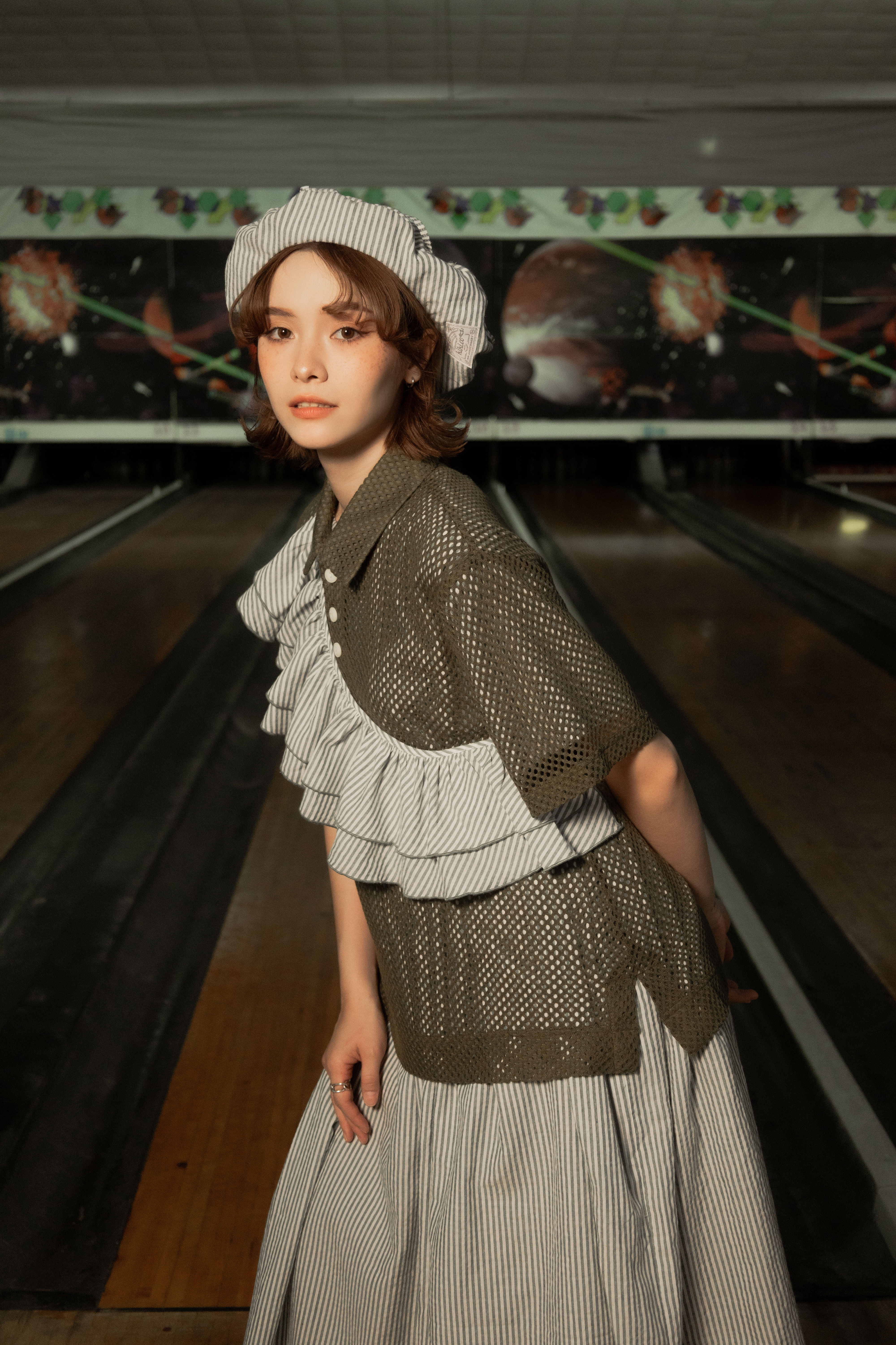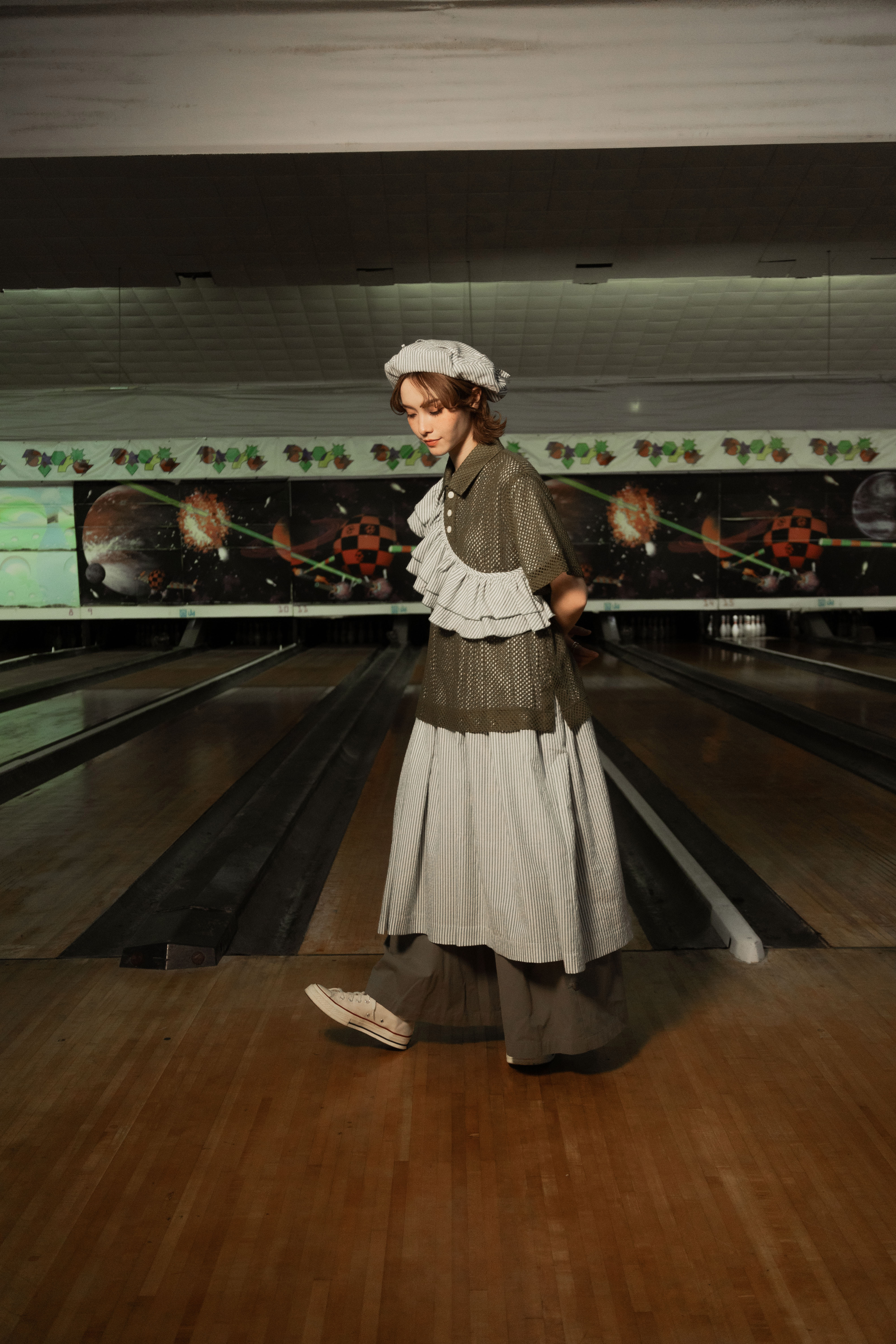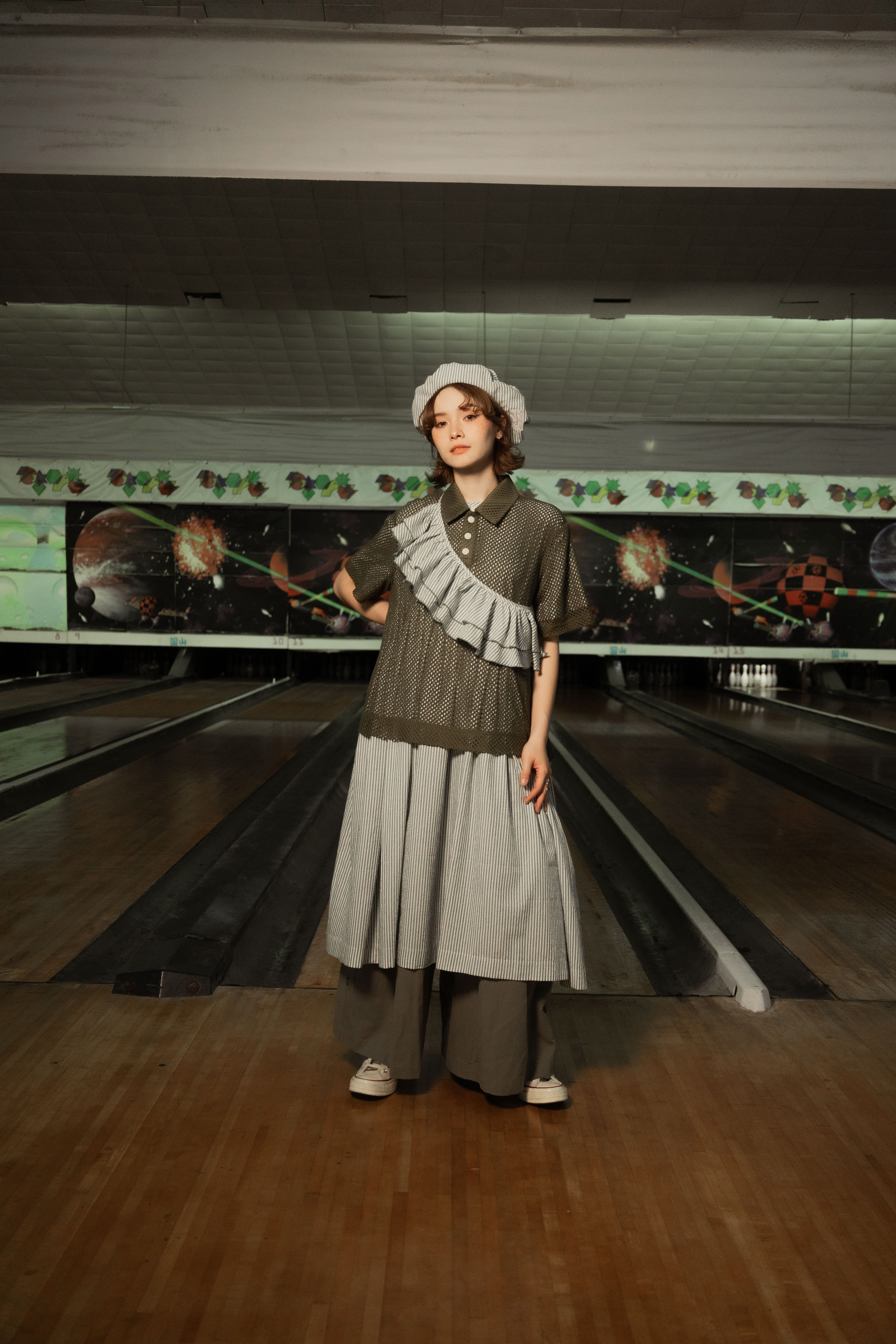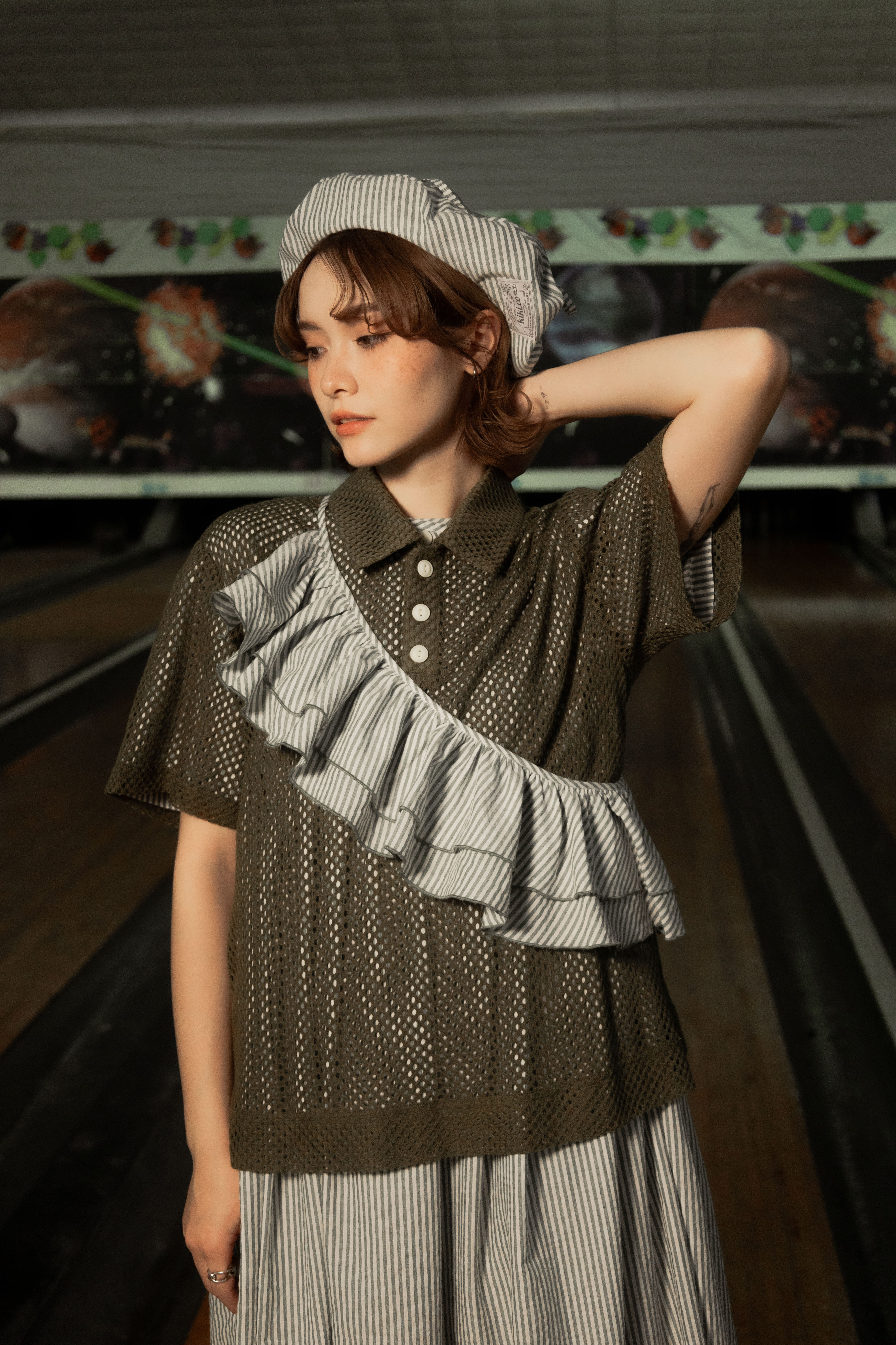 ✱ Model 著用(洋裝): Ruffle striped dress set Matte Green