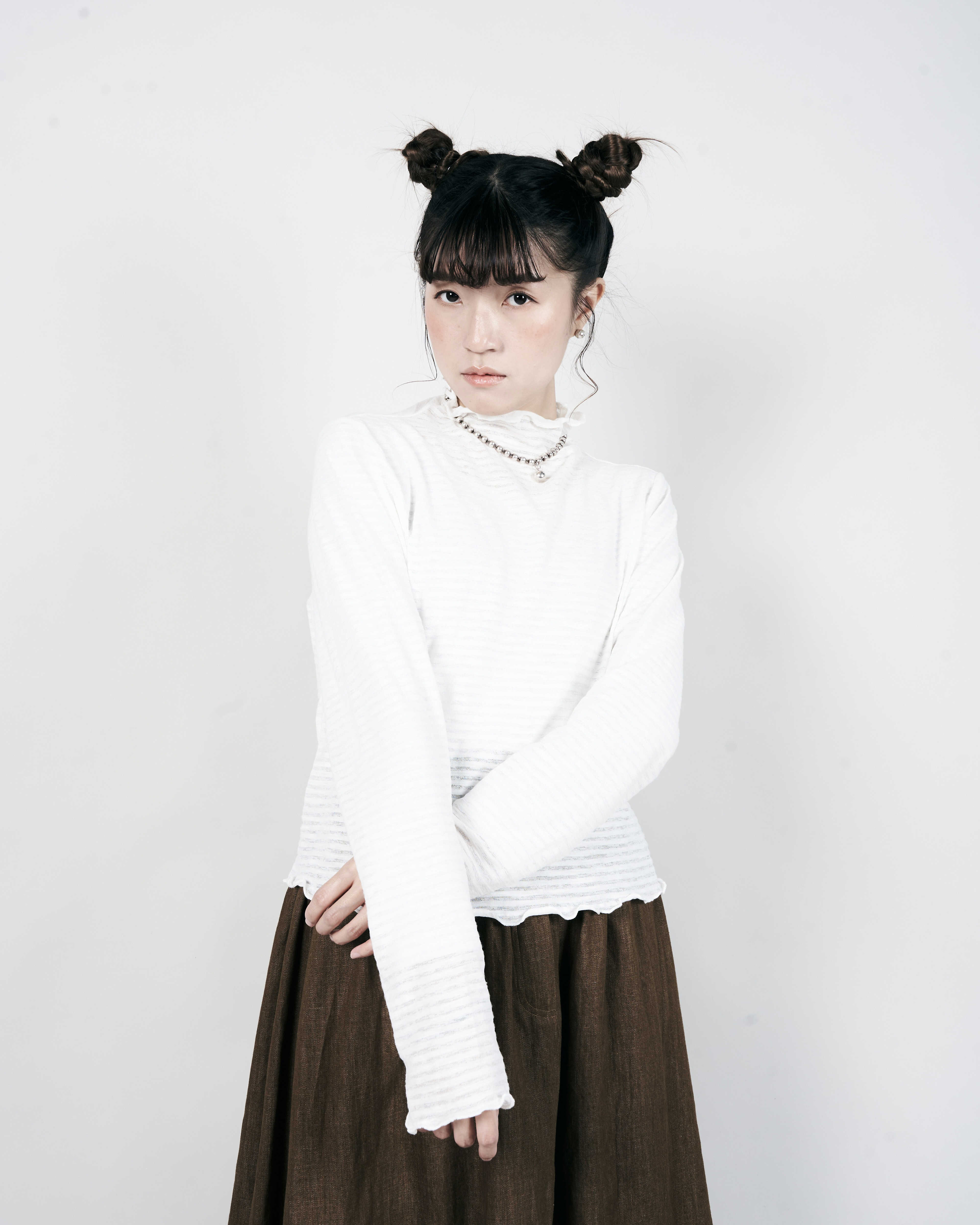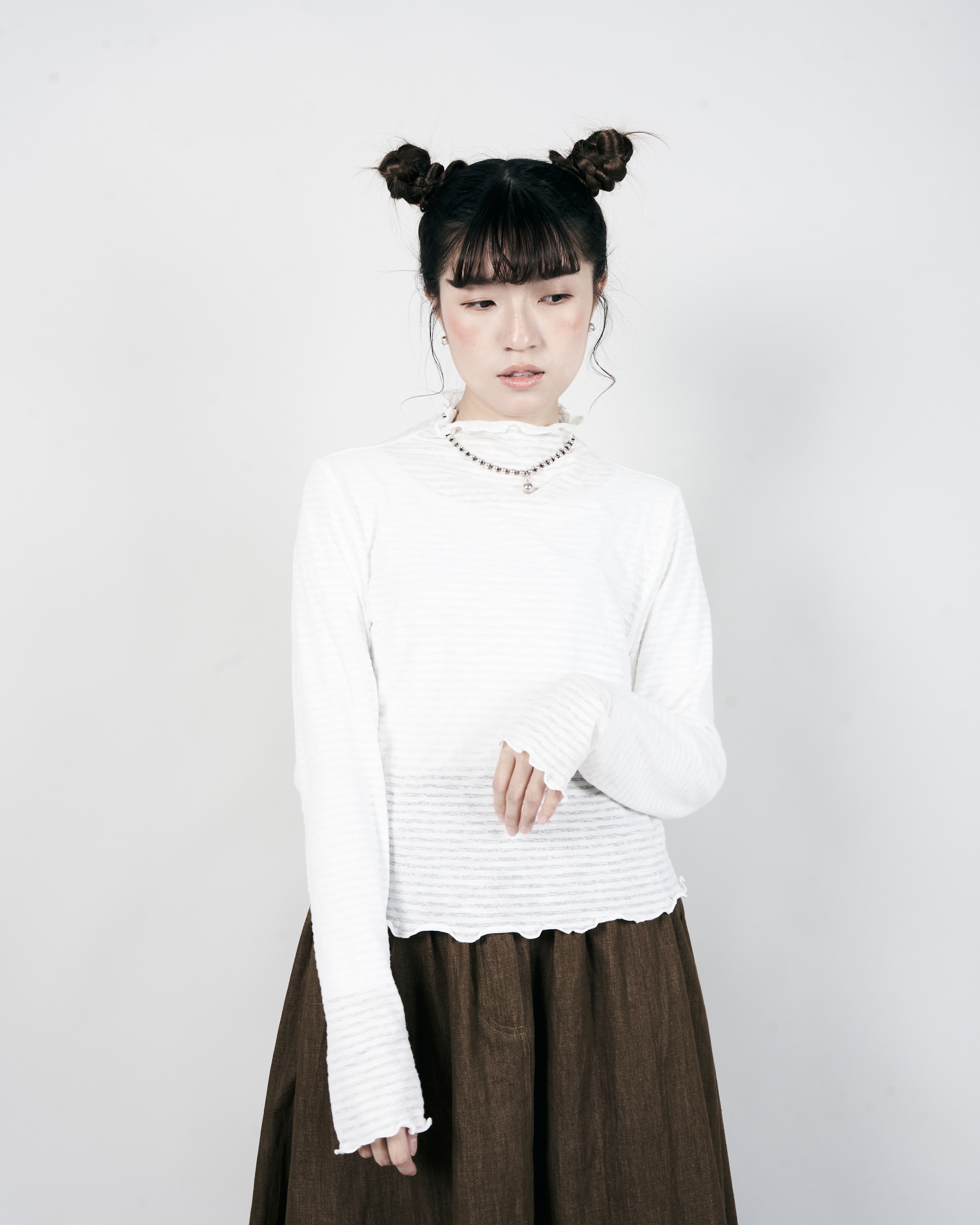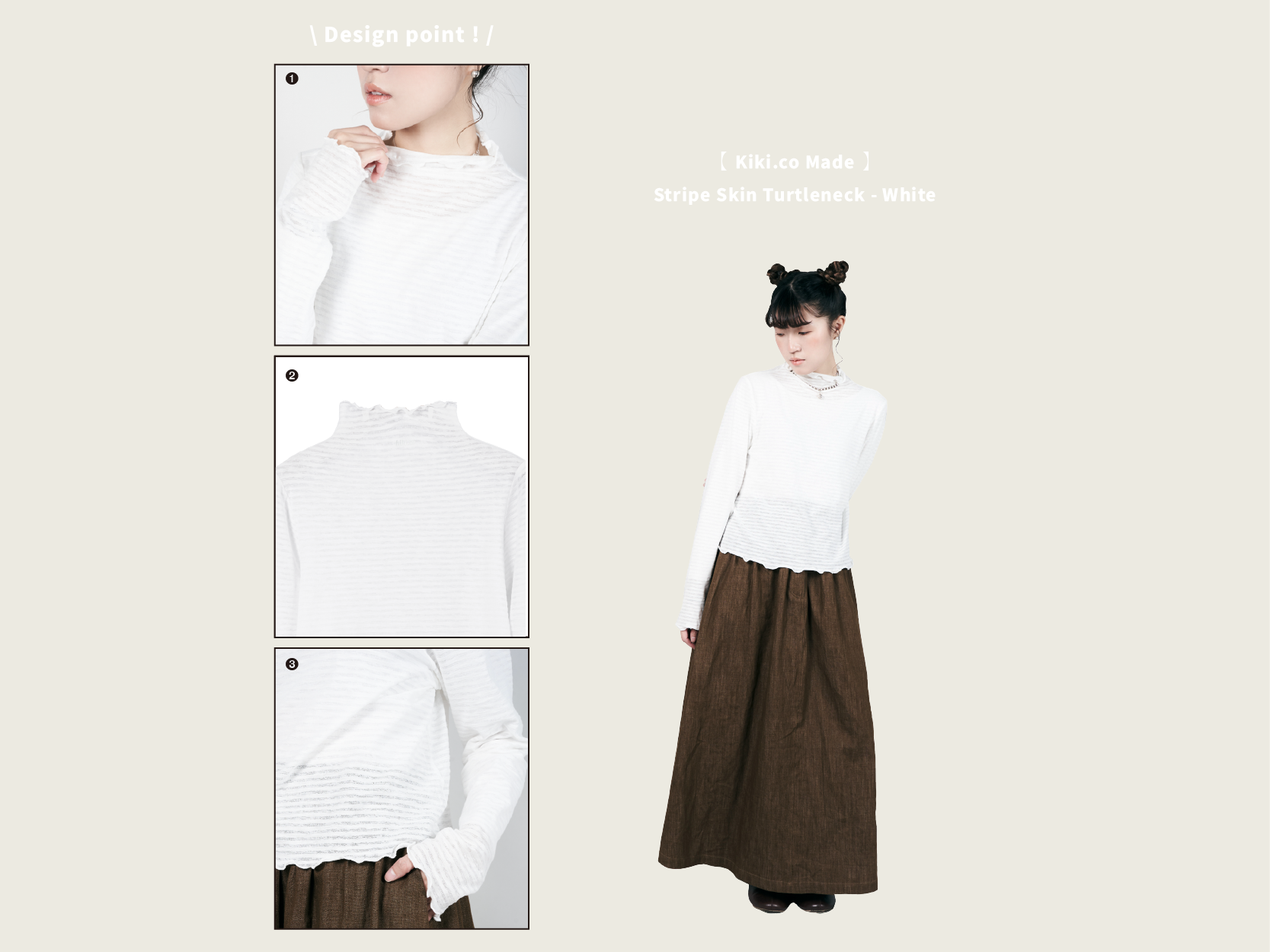 【 Kiki.co Made 】Stripe Skin Turtleneck - white