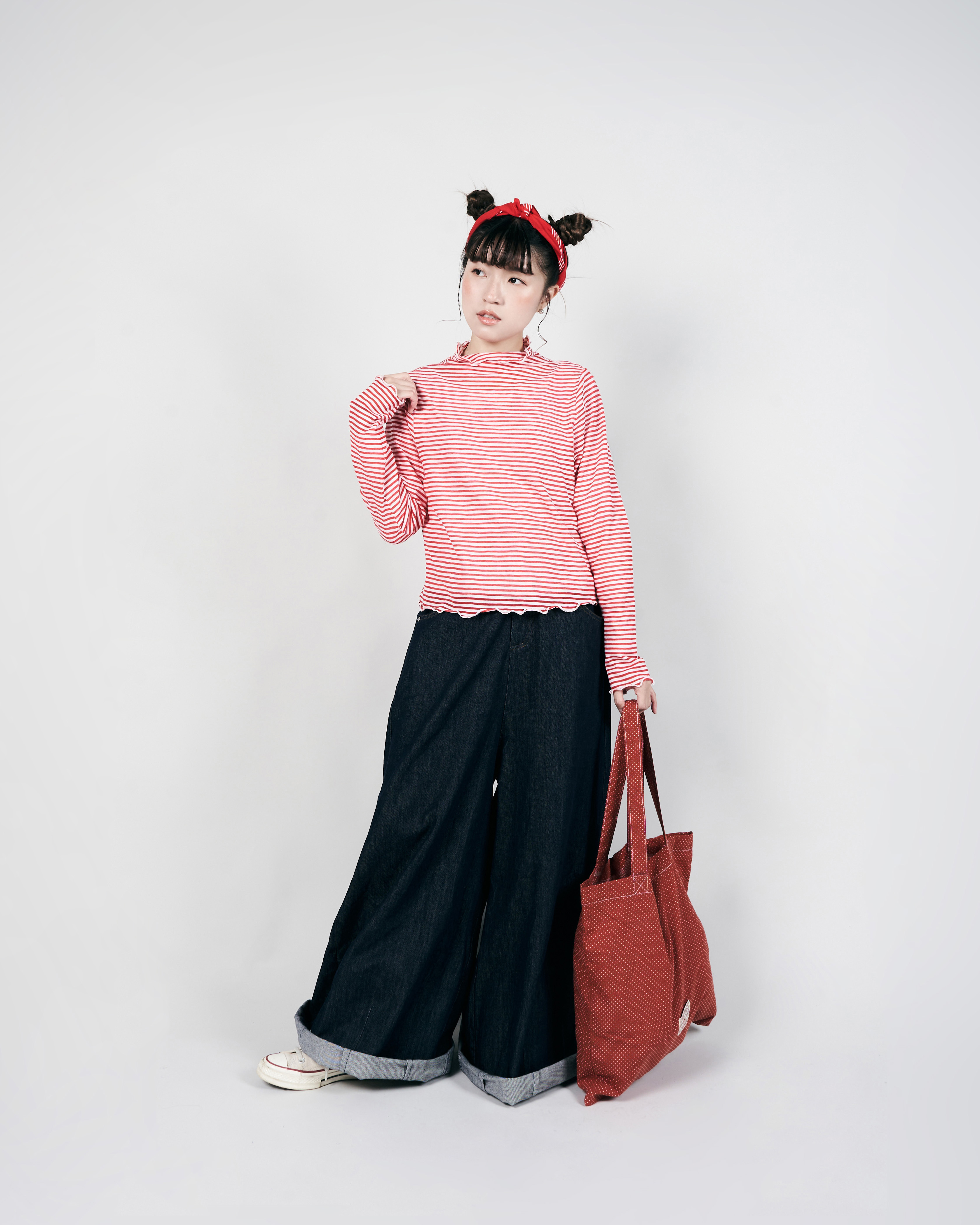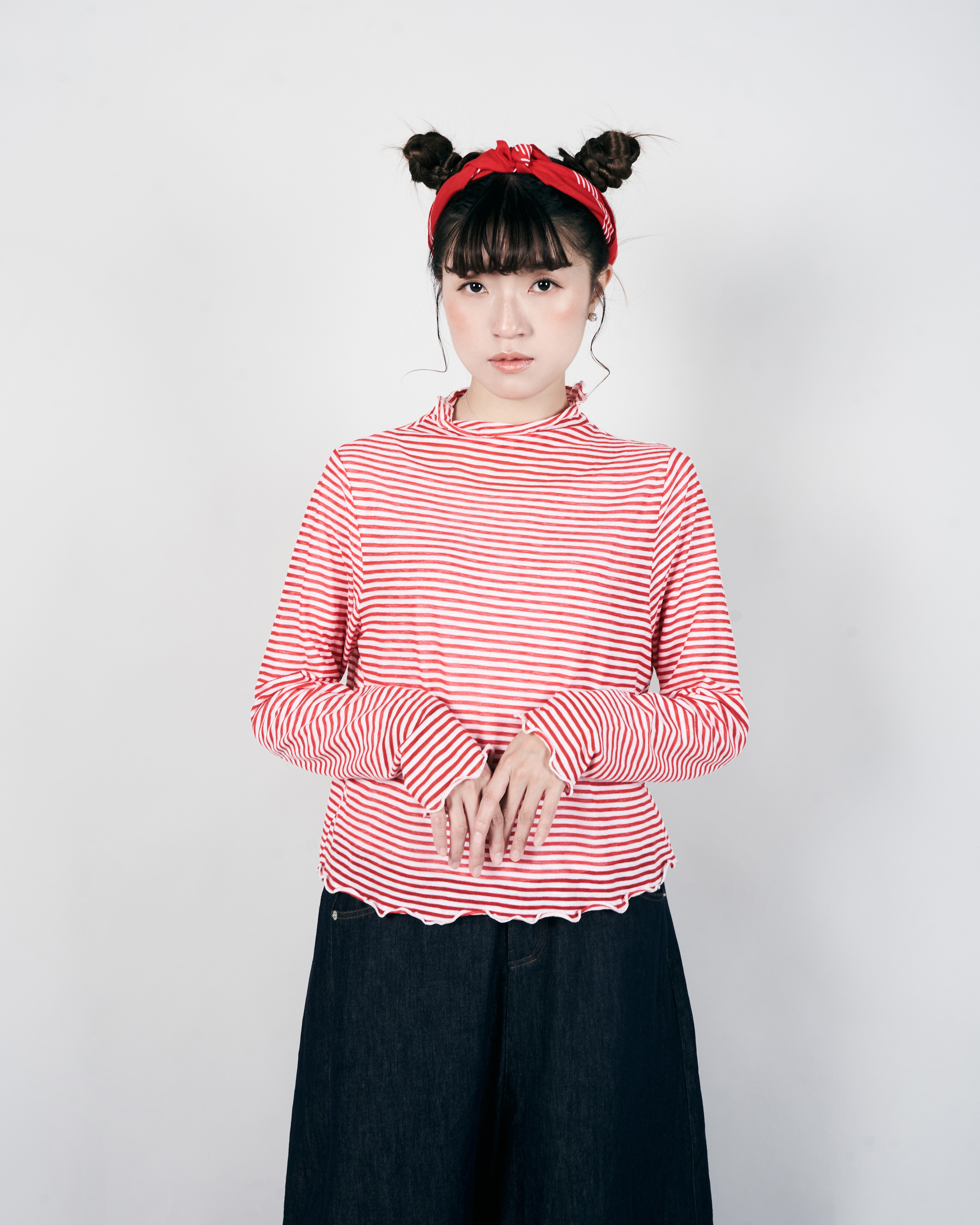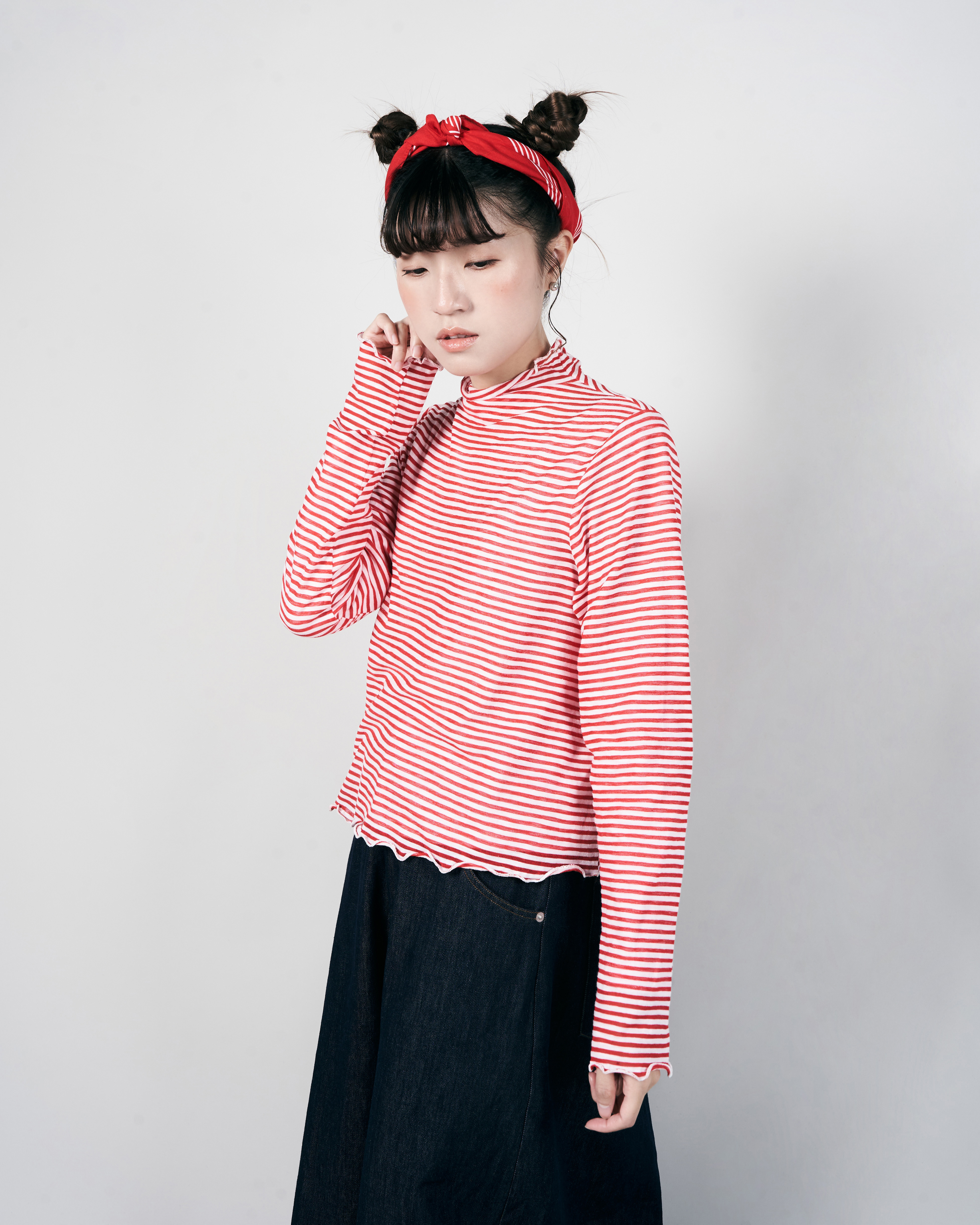 【 Kiki.co Made 】Stripe Skin Turtleneck - red