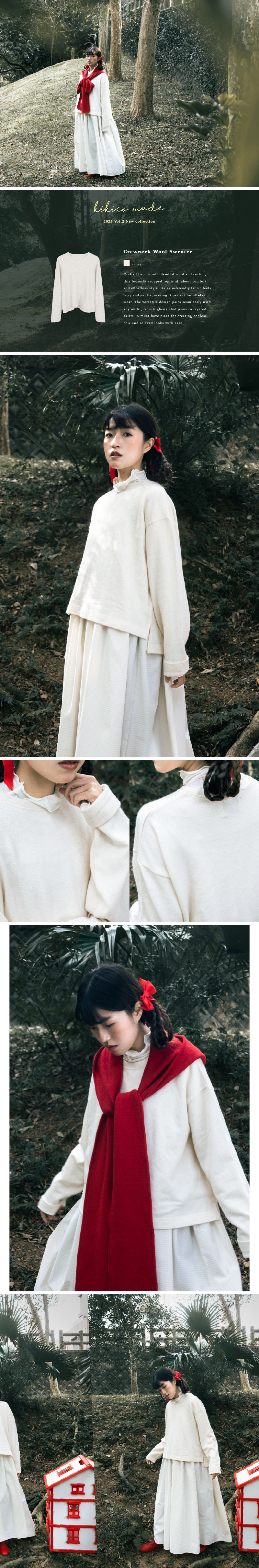 【 Kiki.co made 】crewneck wool sweater - ivory