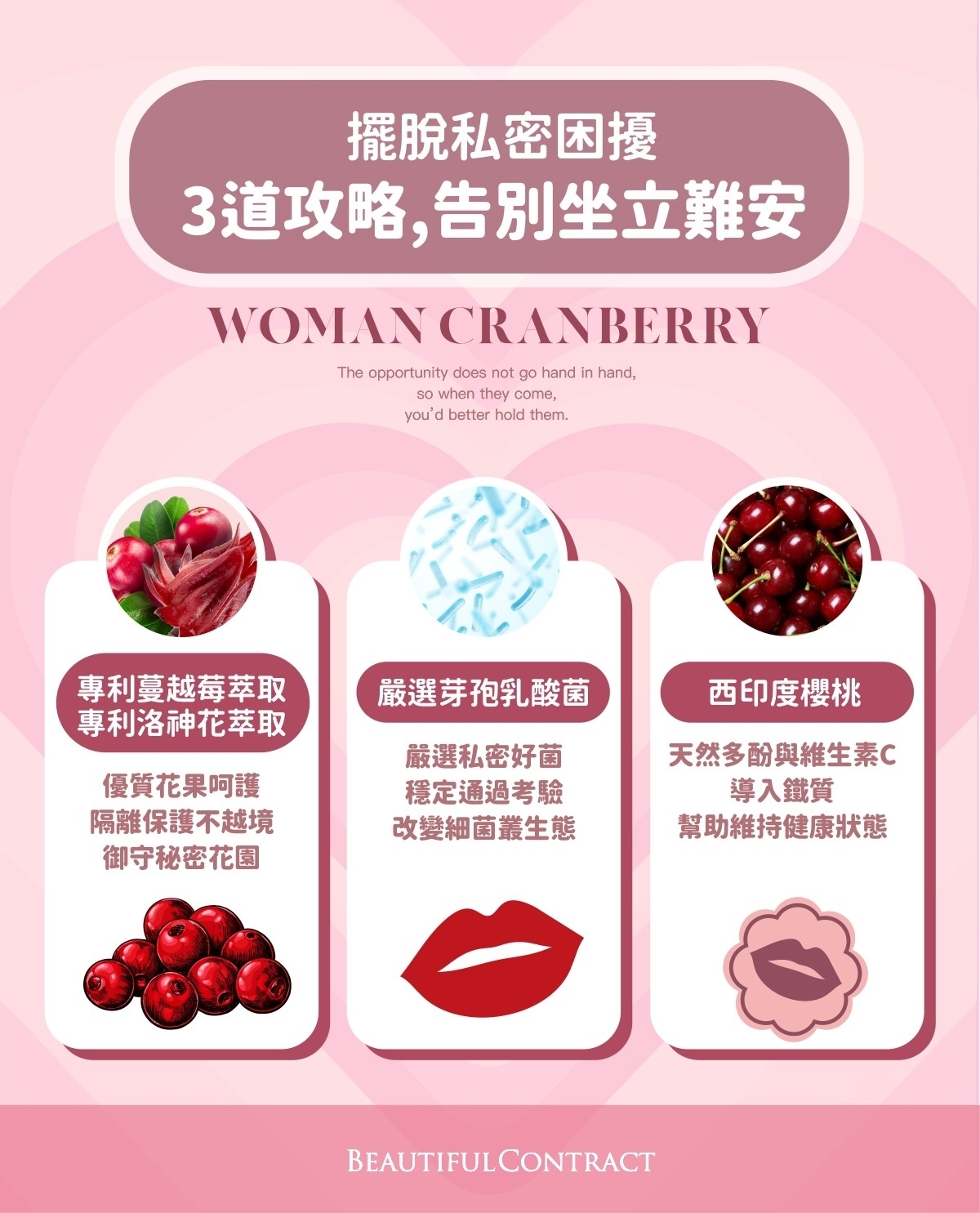 - 超越市面頂規等級,雙重蔓越莓精華複方,呵護女性私密處