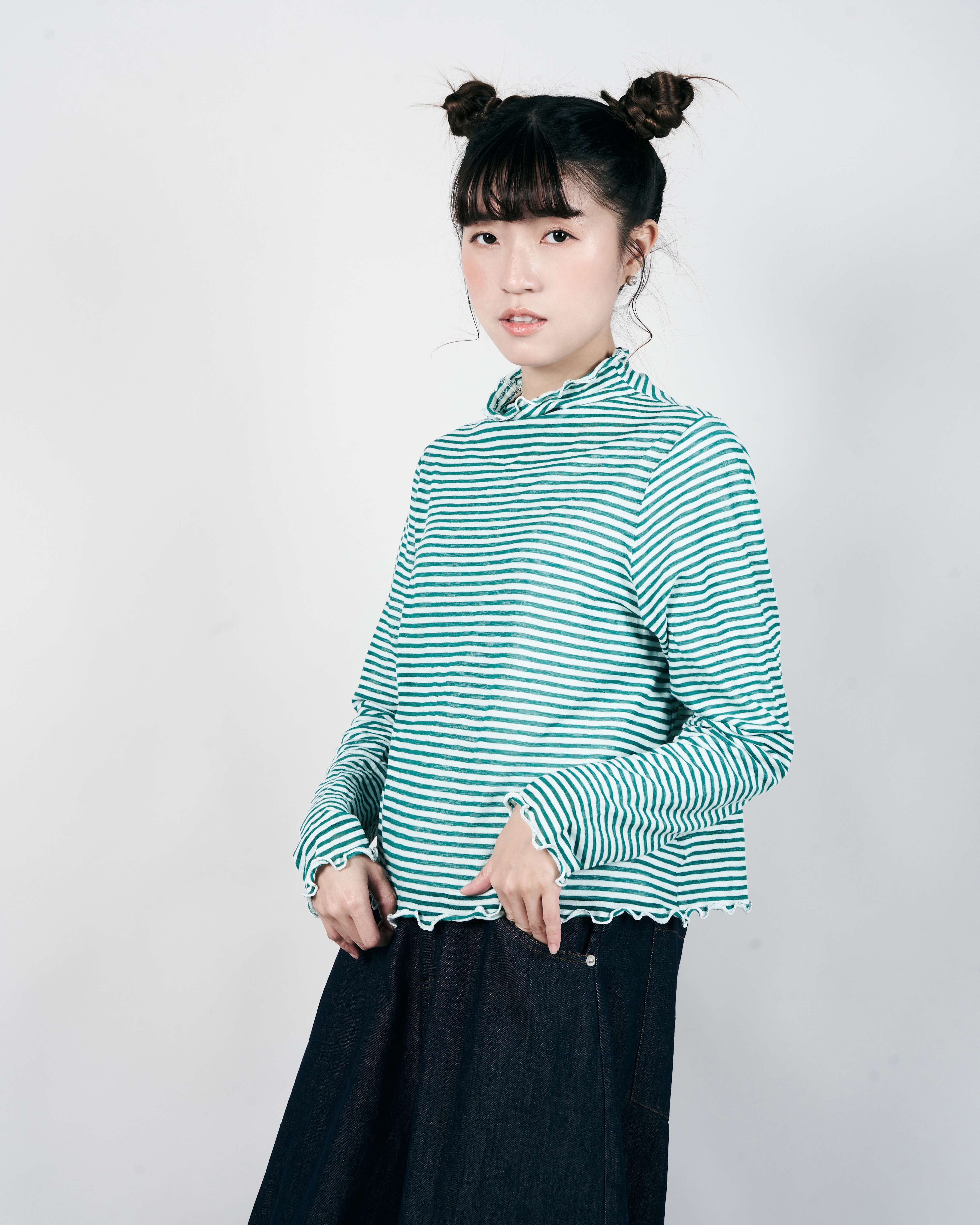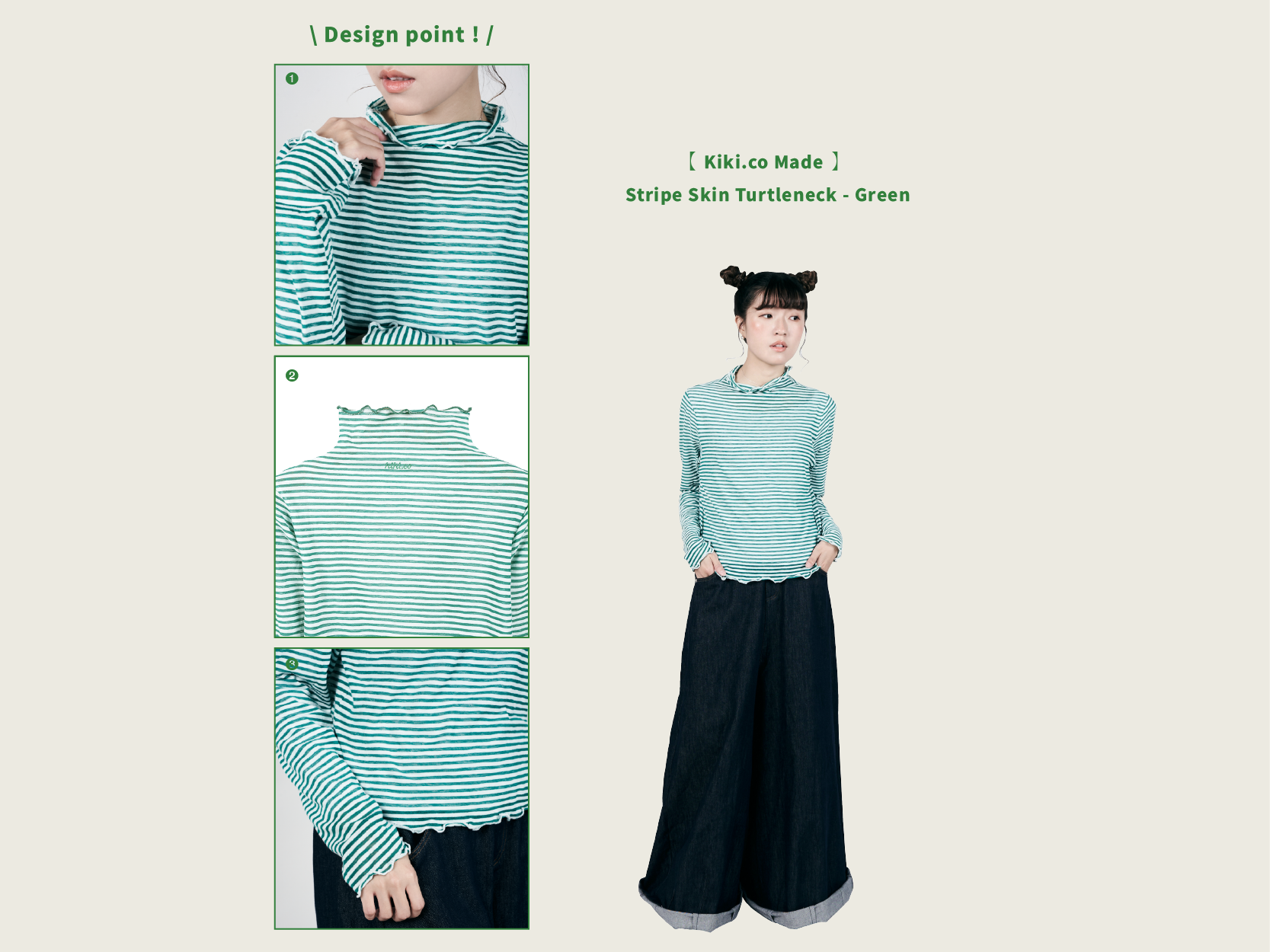 【 Kiki.co Made 】Stripe Skin Turtleneck - green